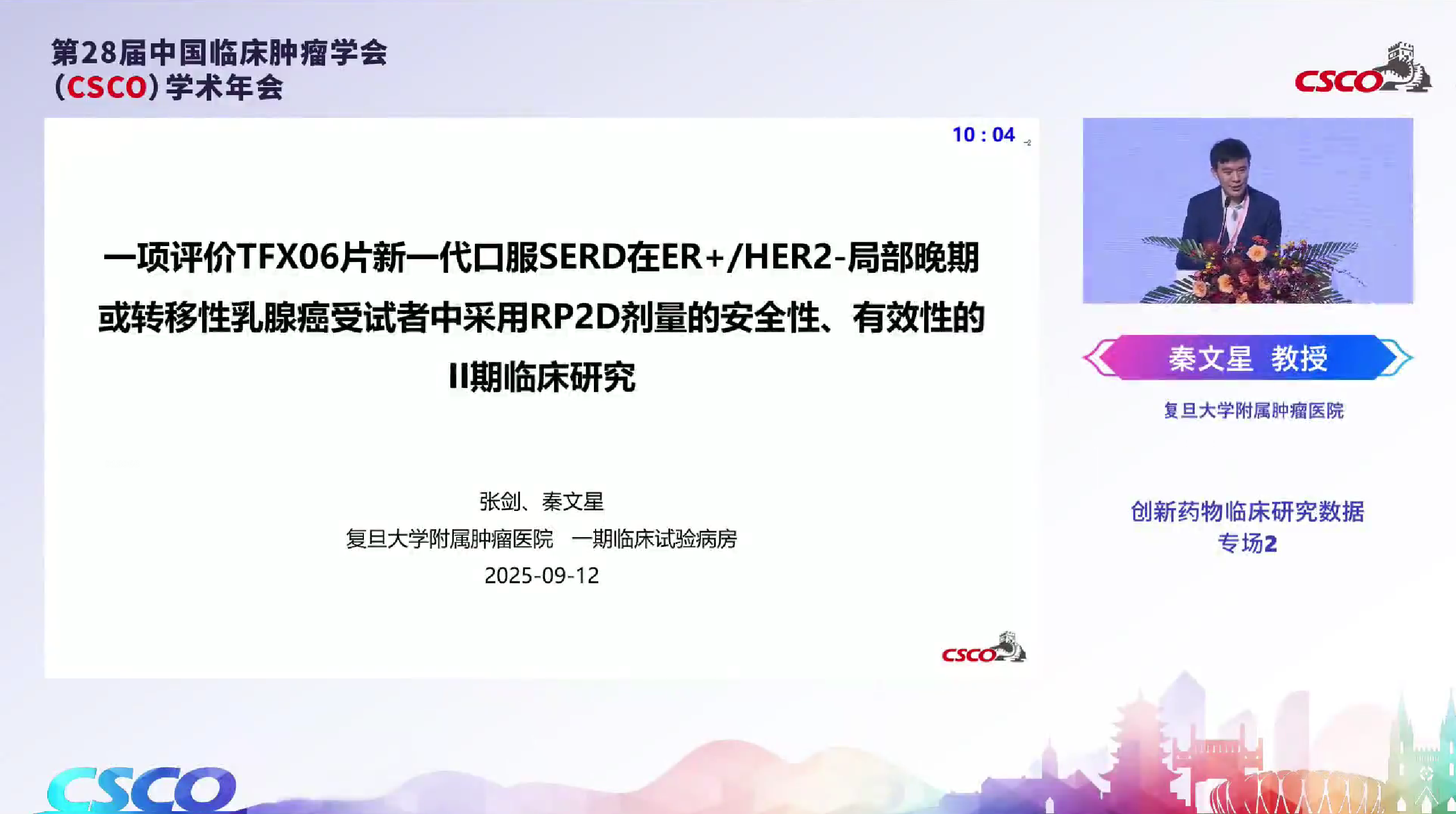 TFX06片为新型、口服、选择性雌激素受体降解剂(SERD),在既往接受过多线治疗后的ER+/HER2-晚期乳腺癌患者中,尤其经CDK4/6i、氟维司群治疗后,仍展示明显疗效。